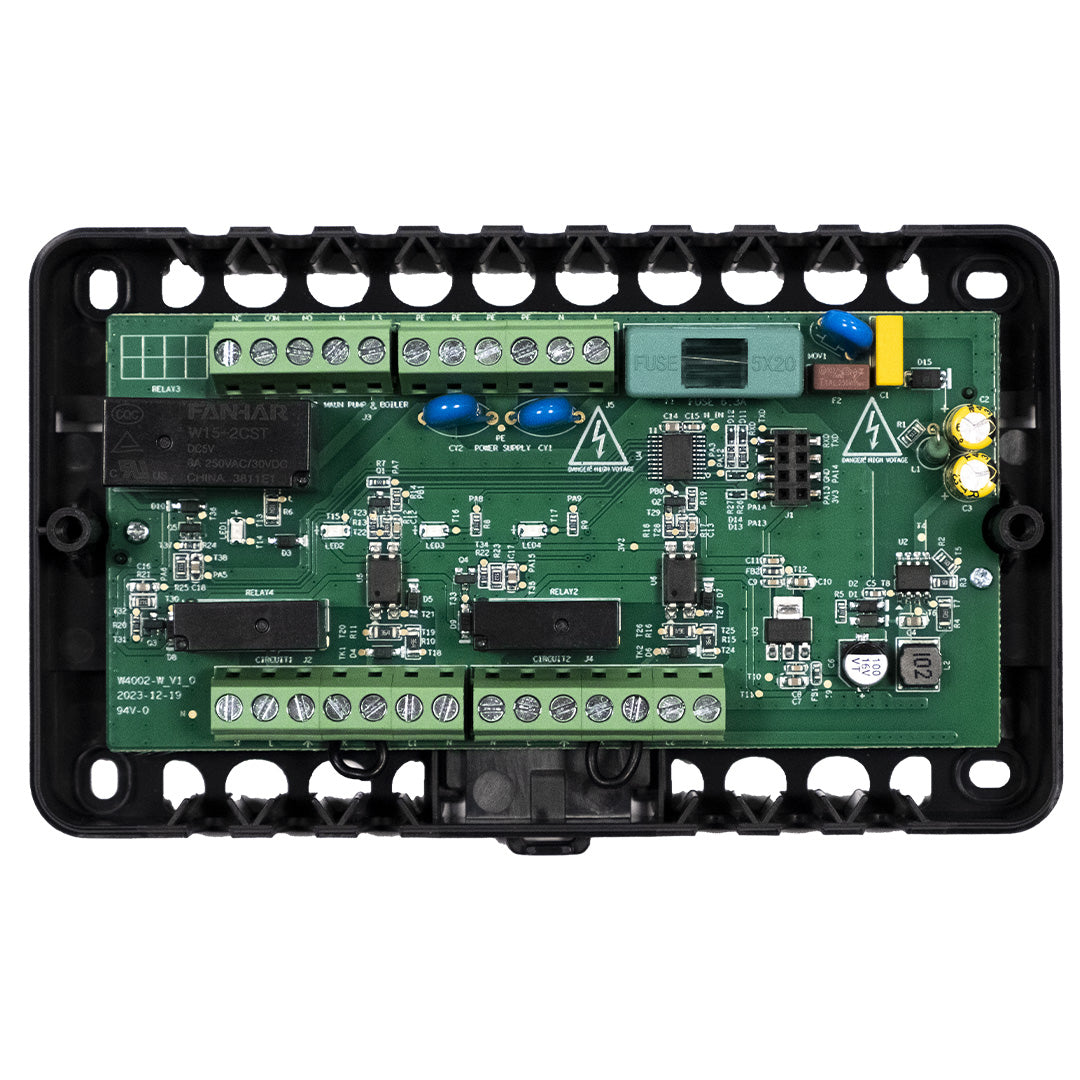 Centrul de comanda ENGO ECB2 este integratorul perfect pentru instalatii cu doua circuite de incalzire. Conceput pentru a controla atat pompa principala, cat si sursa de caldura, ECB2 simplifica instalatia si ofera un control sigur si eficient al sistemului. Este ideal pentru case cu etaje sau cu zone diferite de incalzire, permitand gestionarea separata a unui circuit de pardoseala si a unuia cu radiatoare.